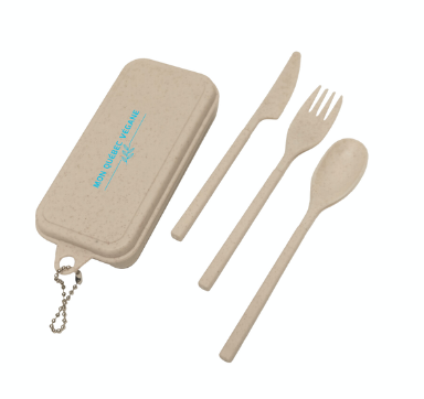 Mini-ensemble d'ustensiles réutilisables en fibre de blé